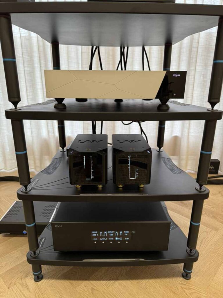 Equipment racks were primarily from Bassocontinuo, and additional isolation devices were provided by the Polish firm Graphite Audio.