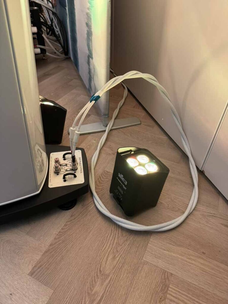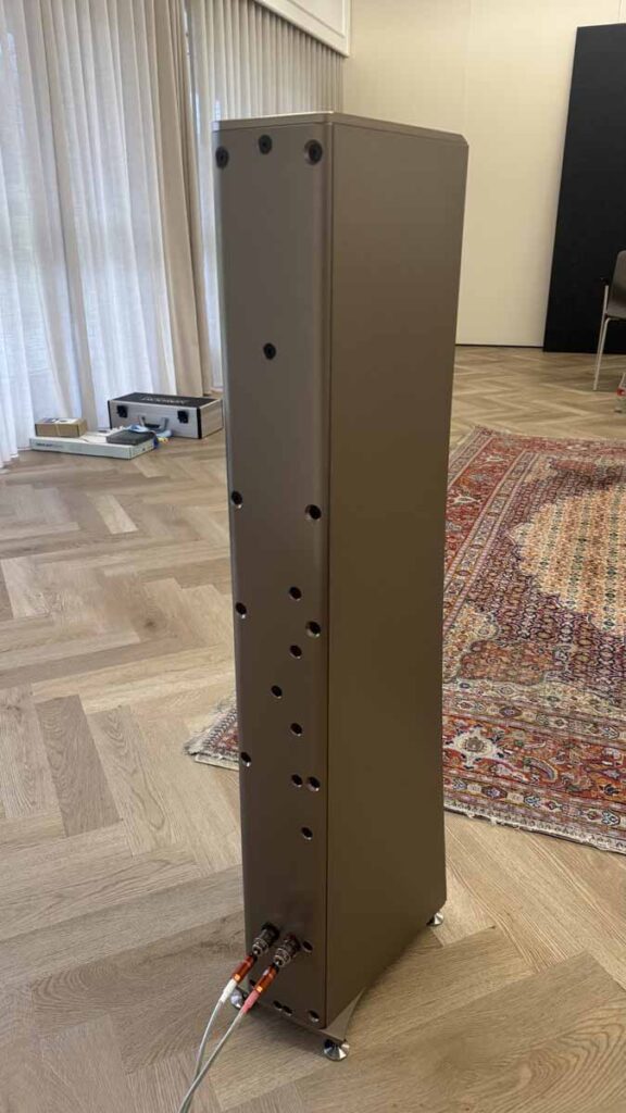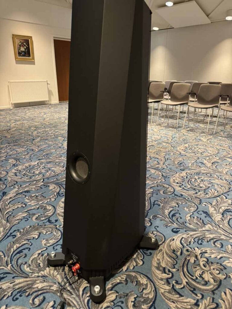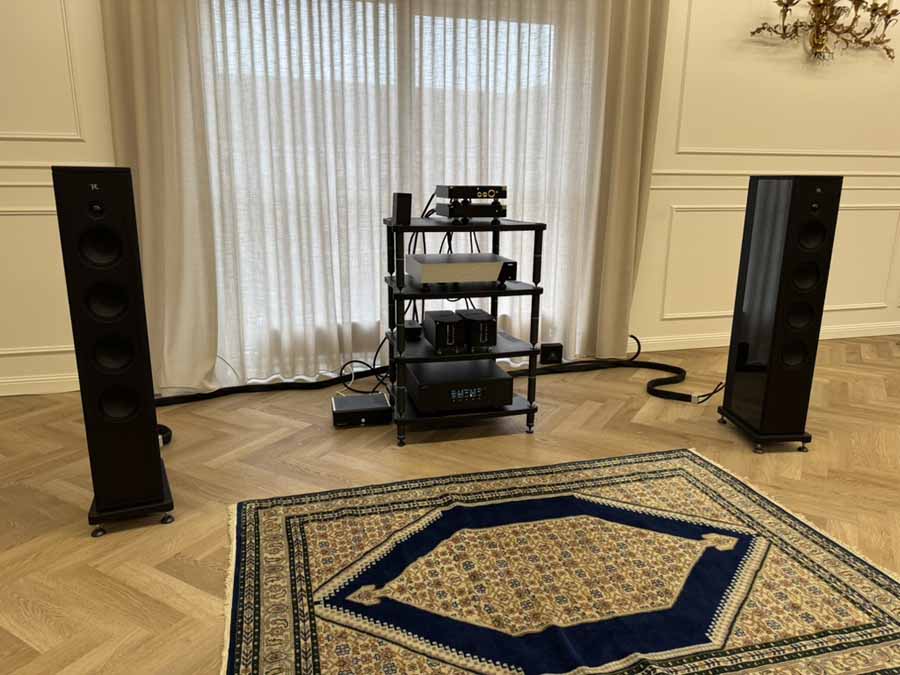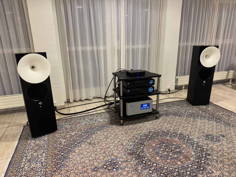 On Friday evening, while the various teams were working hard to optimise the upstairs systems for the challenging room acoustics, two of Morten’s long-time customers, who had kindly offered to lend a hand for the weekend, were tasked with unboxing and connecting the gear in this room. It’s quite reassuring for those of us who aren’t dealers setting up systems all the time, because the chaps got a really great sound going in the room just via playing around extensively with the speaker placement. There was no DSP running here, no acoustic panels anywhere, just the all-in-one and the S2s.
