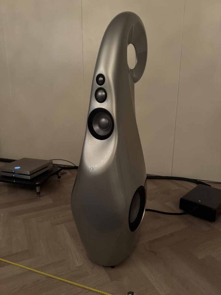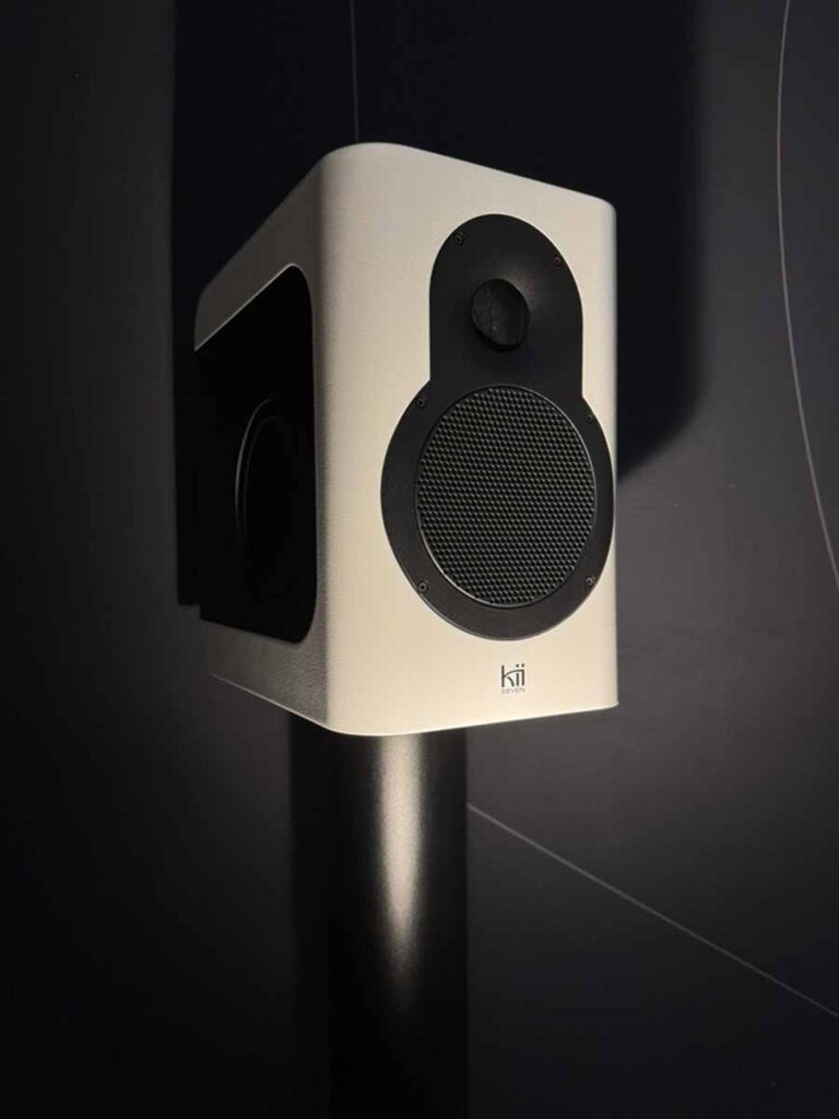 Wiim at Kii is well known to us at HiFi PiG, and here he was demonstrating the Kii Seven standmounts, in what was comfortably the cheapest system at the show by some margin. Their use of close-wall positioning and DSP, along with the cardioid bass-driver arrangement, means these tiny 10L boxes sound far bigger than you’d expect from anything this size. This was another ~100sqm room, but the Sevens weren’t bothered at all by filling such a huge space.