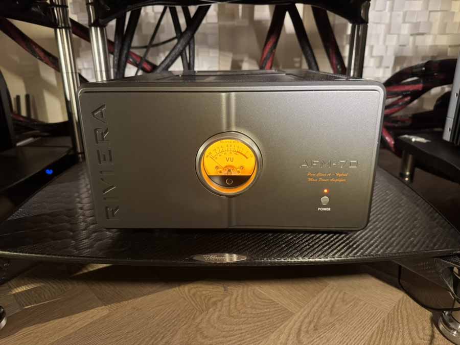 Amplification was by the Italian manufacturer Riviera, with the company’s co-owner and longtime figure in the Italian audio scene, Silvio Delfino. Both the Riviera pre and power amps are hybrid units, but unusually are all class-A throughout, using valves purely in the input stage, and MOSFETs in the output stage. I’m also a complete sucker for any kind of VU meter on the front of a hifi component, and the monoblocks feature a lovely orange back-lit affair that brings me so much joy. The loudspeakers were the Stenheim Alumine Five SX, sat on the LE platform. The LE is a solid aluminium optional platform; otherwise, you can have them with a more “standard” set of spikes and cups (obviously, in this sort of territory, nothing can be considered remotely “standard”, but it’s the default option).