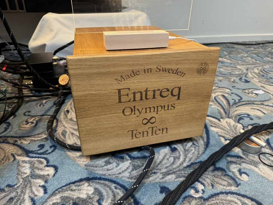 This was an absolutely massive system – from the Stromtank power plant to the MSB S500 power amp, and the Magico S3 loudspeakers, there are some really chunky pieces of kit involved. Both this and the Gryphon room had the additional challenge of suspended wooden floors, which can add all sorts of unwanted effects, especially with low frequencies getting seriously unhelpful reinforcement. It’s a testament in particular to the Ikigai Audio feet under the Magico S3 that so little of that energy was being transmitted into the floor. The speakers are, of course, capable of producing prodigious and punchy bass, and it stayed absolutely tight throughout, even with music like Kraftwerk or the Cowboy Junkies “This is What I Lost”. A contributor here as well was the acoustic room treatment from Artnovia, which featured in a number of rooms throughout the show.